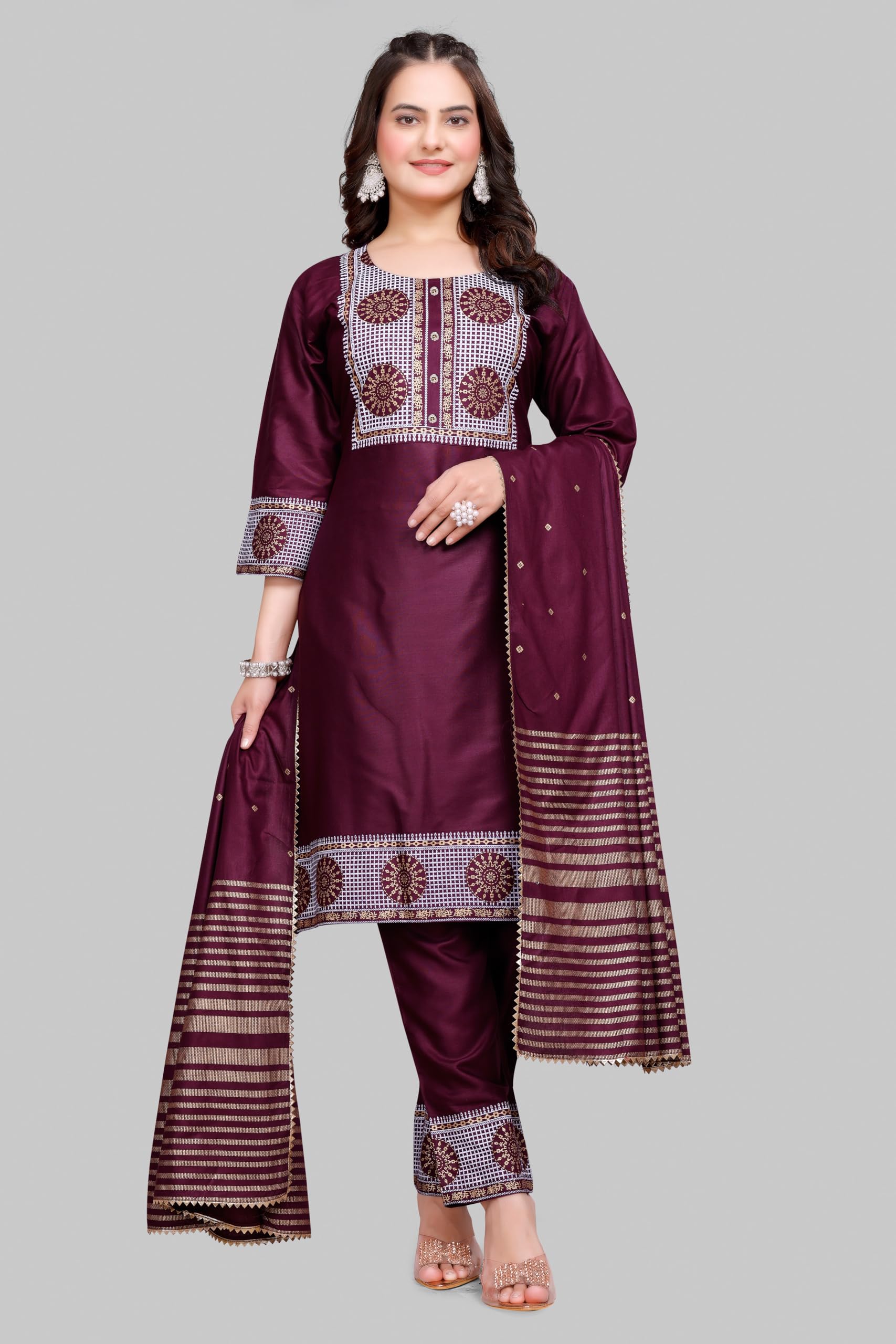 Embroidered Traditional Kurti,Pant & Dupatta Set