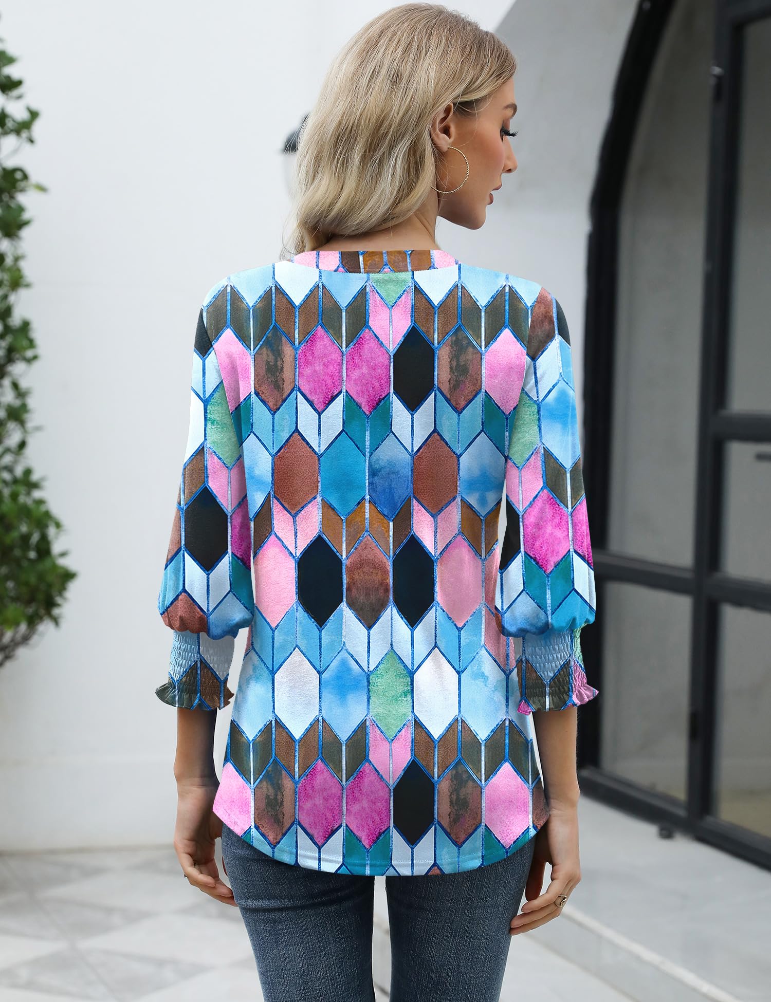 - 【Soft and Flexible】3/4 Smocked Sleeve Top is skin-friendly and comfortable for everyday wear.Lightweight, soft & high quality fabric (breathable but not see-through).