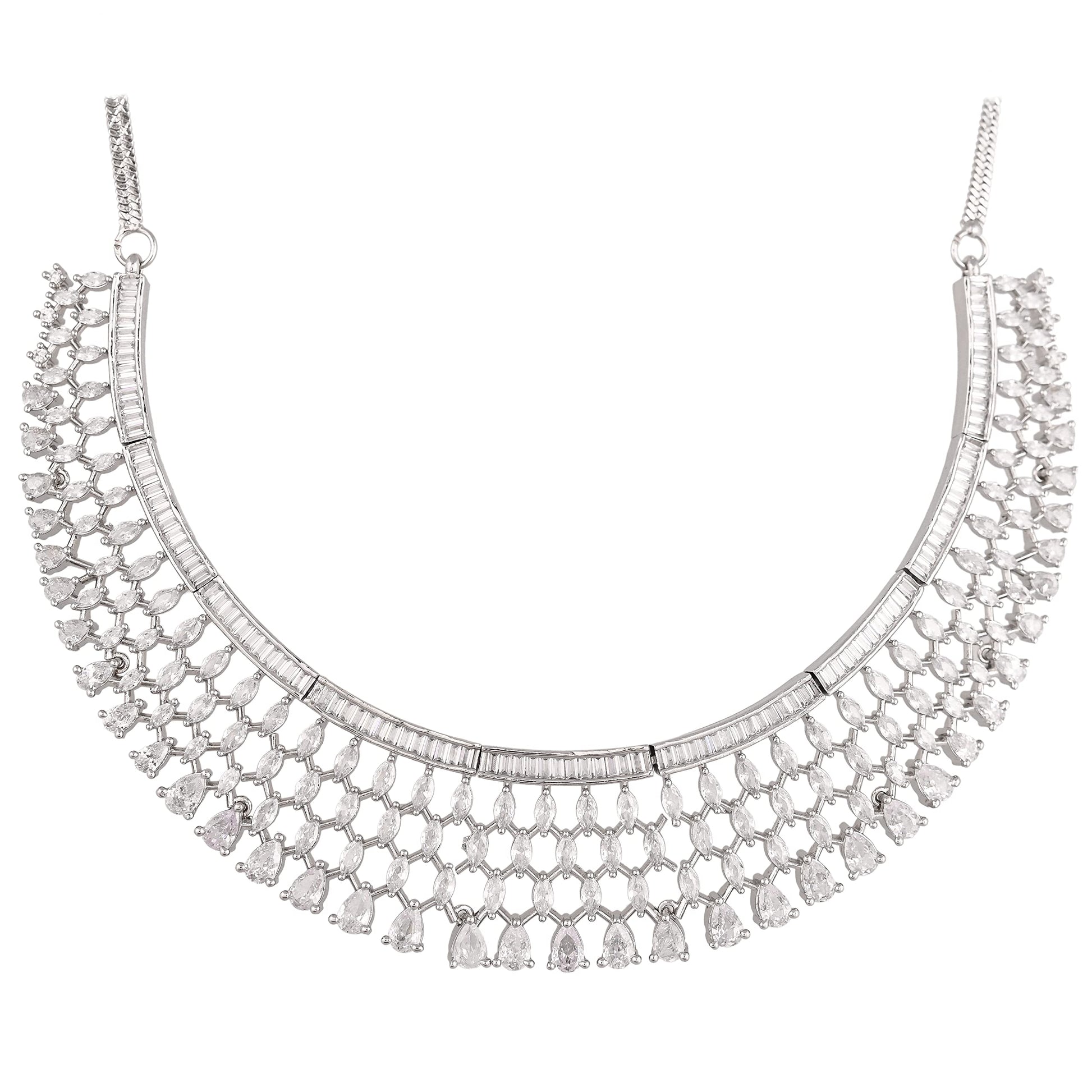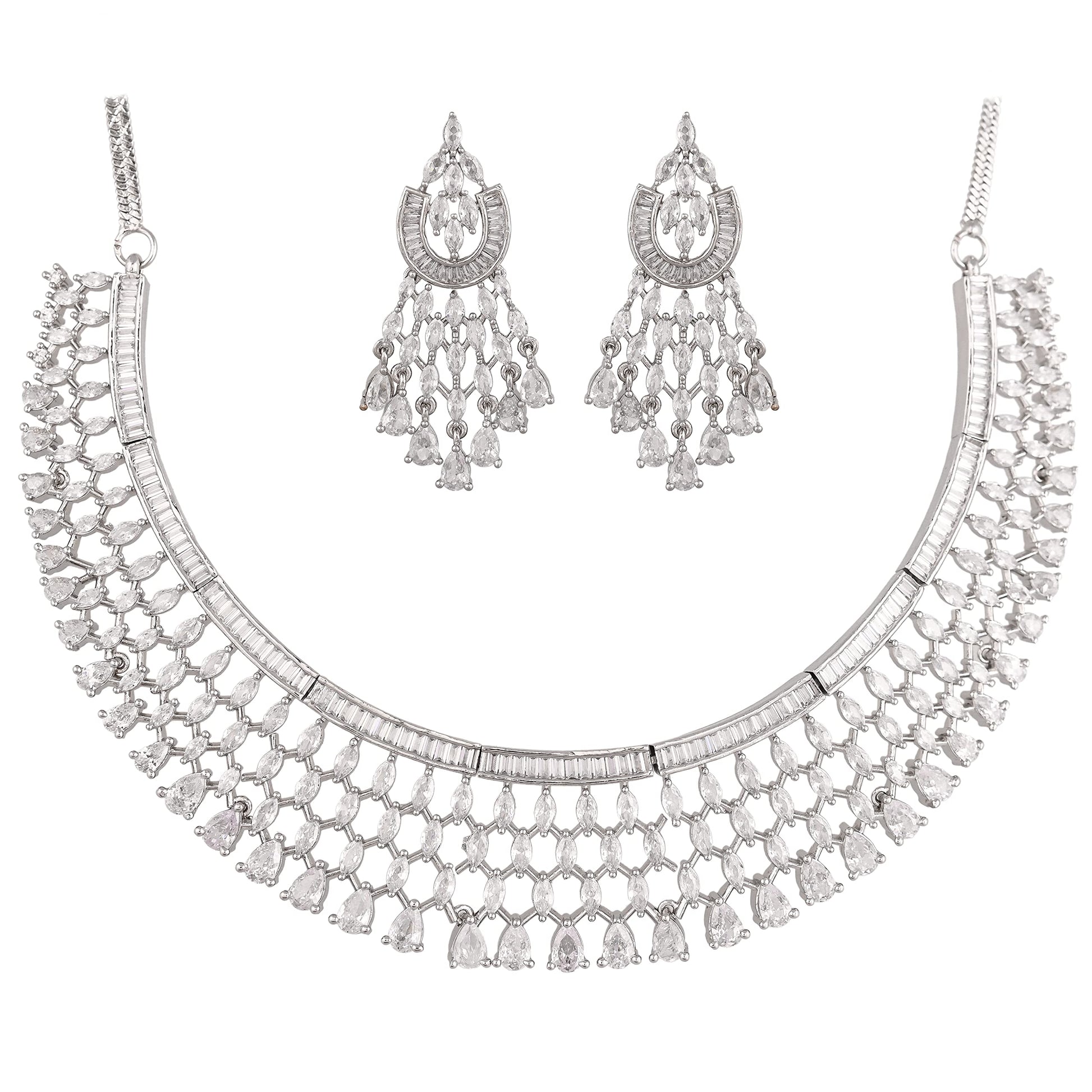 - Ethnic Traditional Fashion Western Wedding Necklace Jewellery Set. Allure Classy Cubic Zirconia Necklace set in White American diamond/ Cubic Zirconia stones