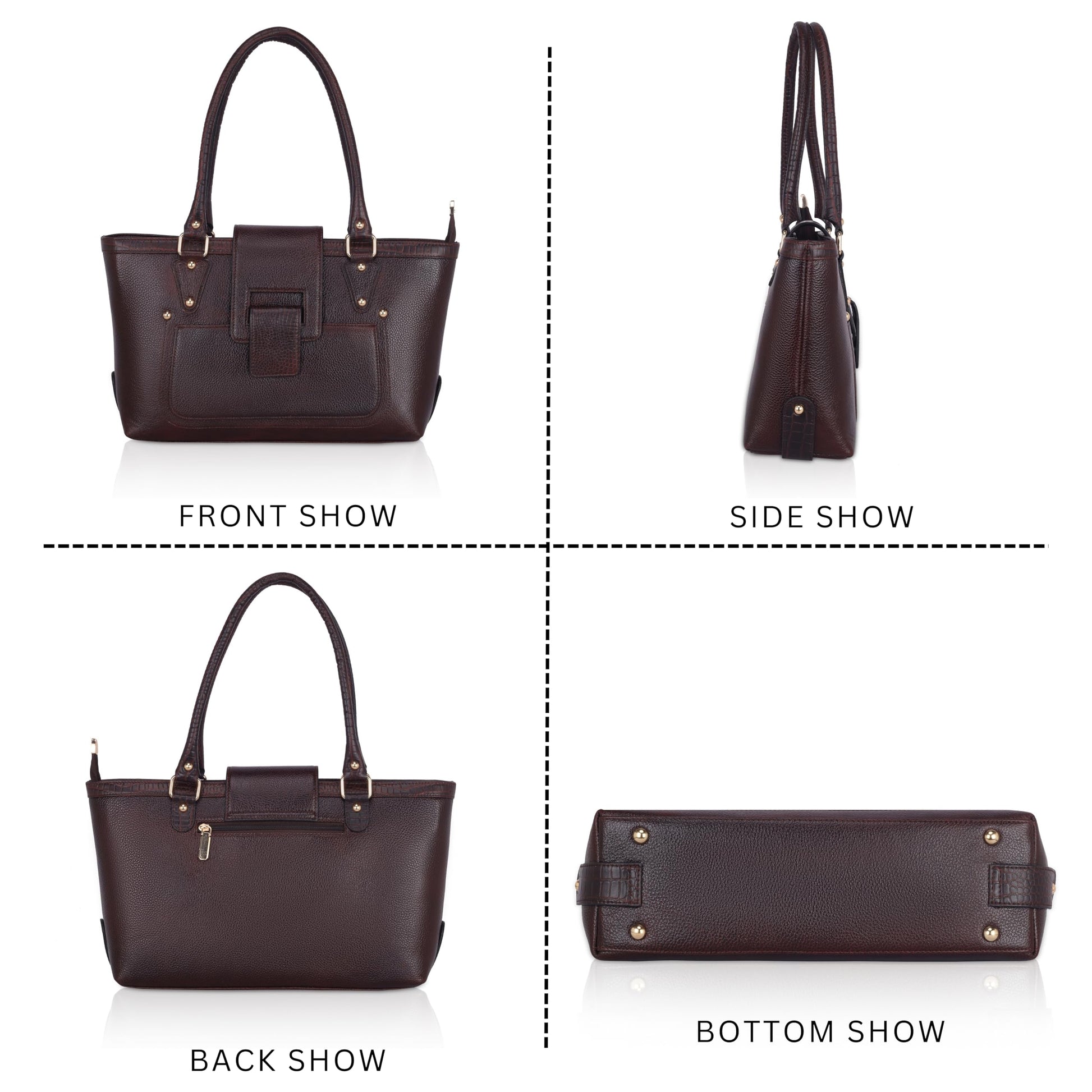 LEATHER ACCESSORIES Full-Grain Natural Leather Top Handle Shoulder & Handbags For Women Office Branded Stylish