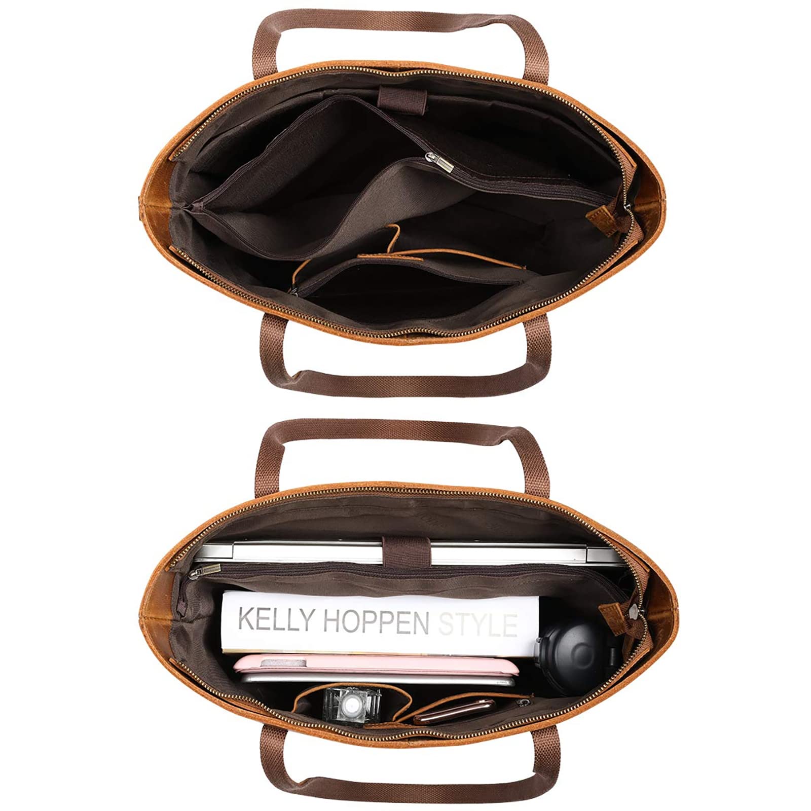 Vintage Genuine Leather Shoulder Laptop Bag Work Totes for Women Purse Handbag with Back Zipper Pocket
