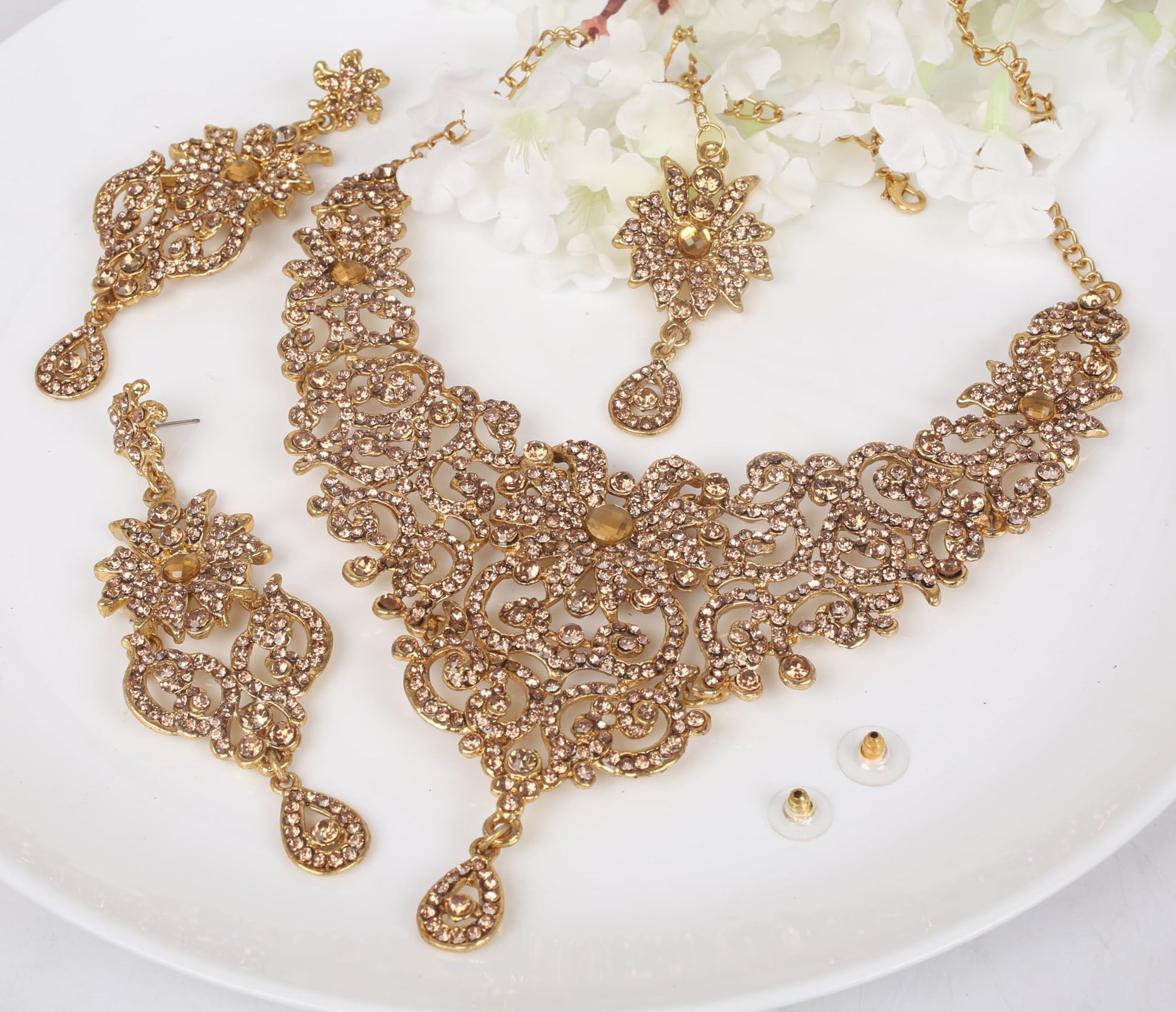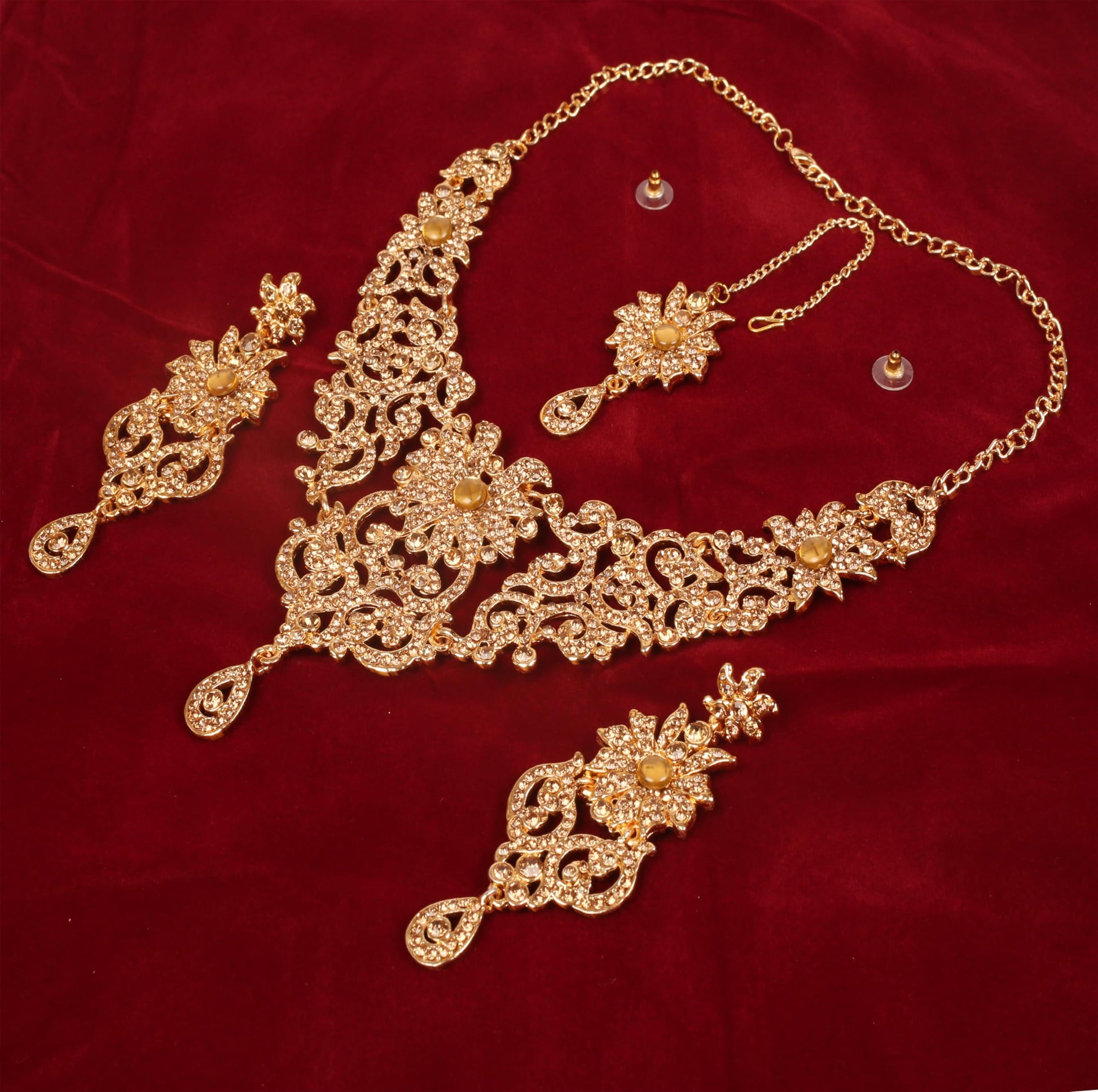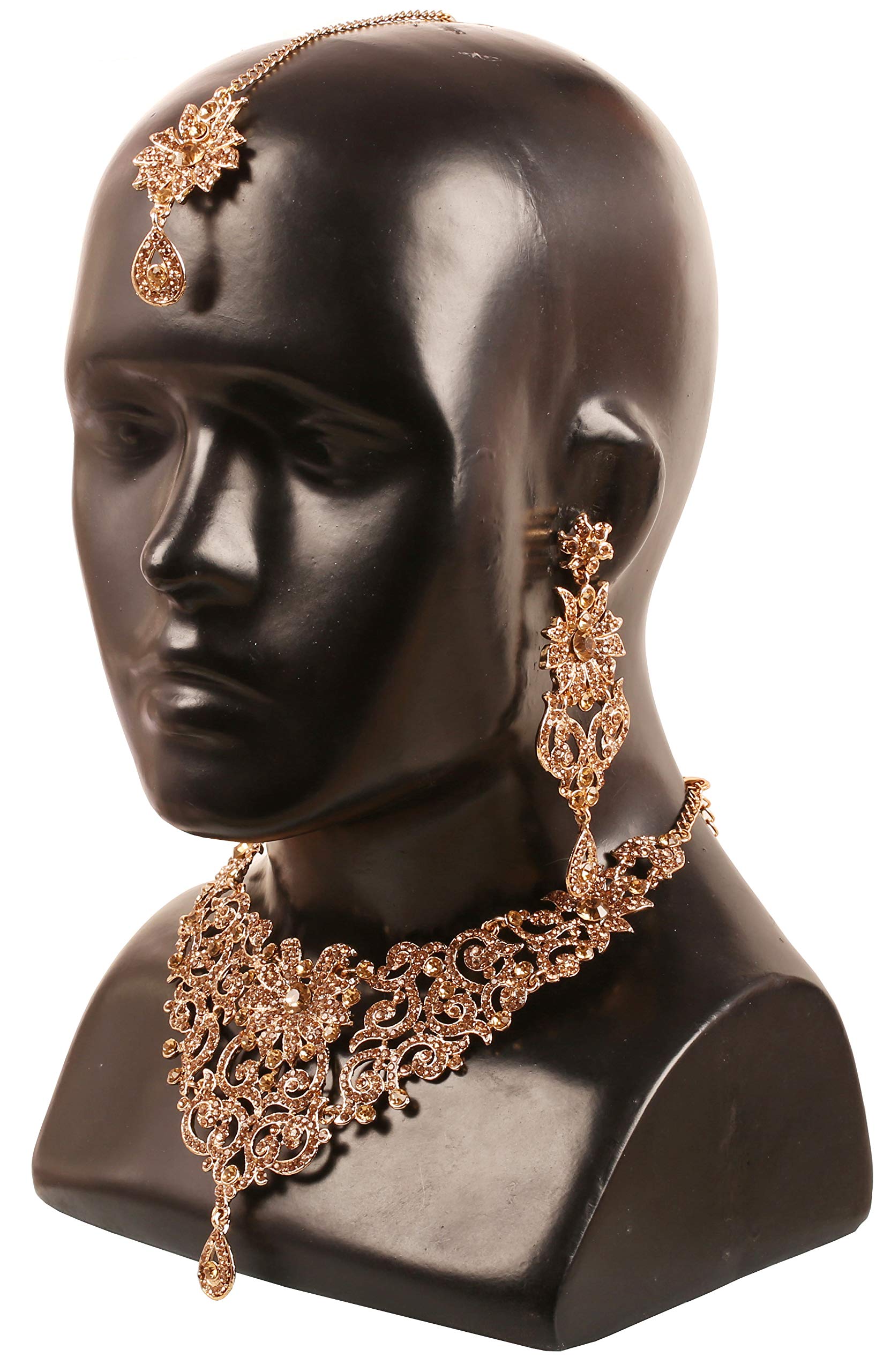 Sparkling Austrian Diamonds Alloy Metal Necklace Set with Maangtika for Women