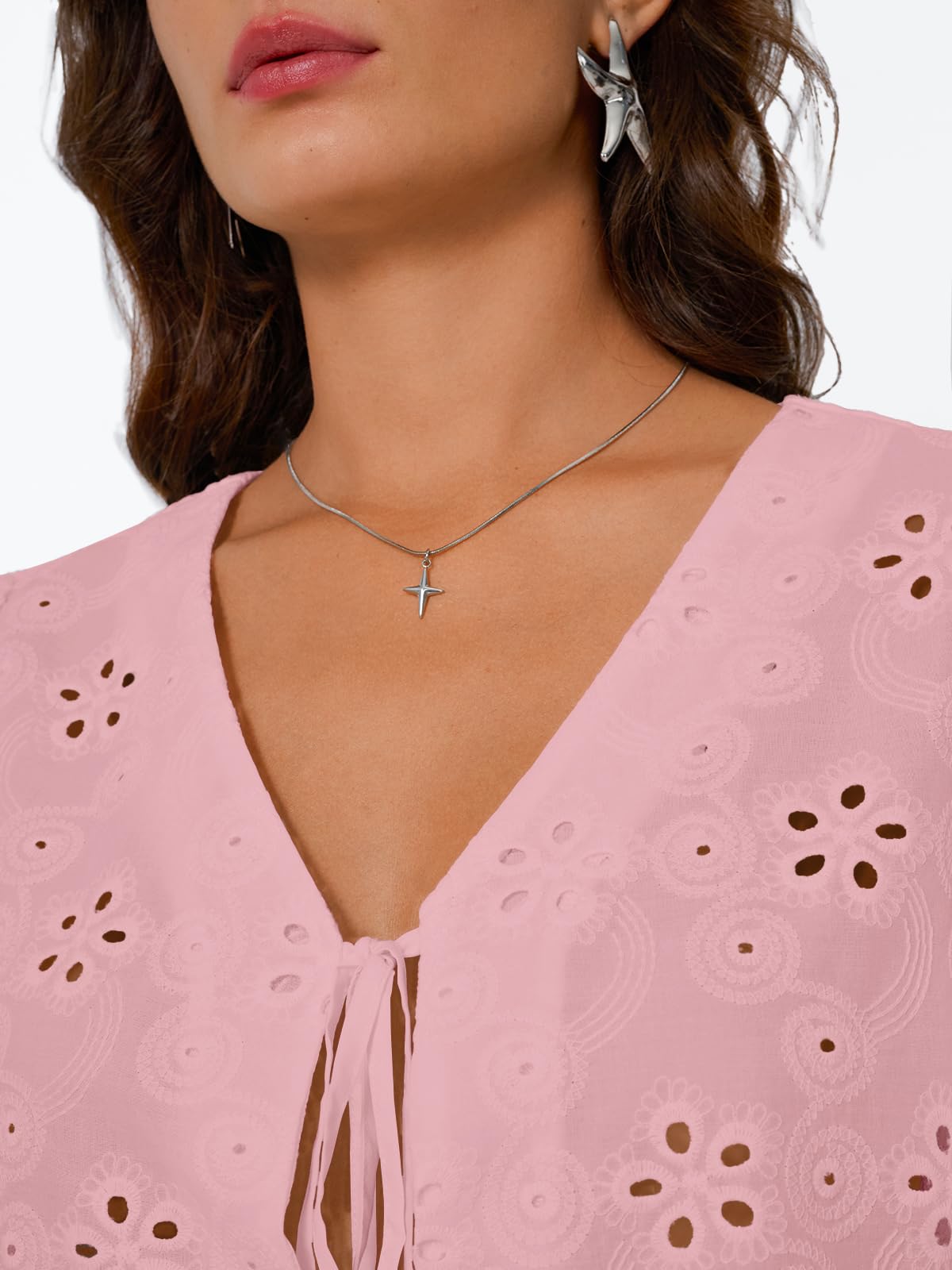 - Fabric: Made of 100% breathable cotton, this eyelet lace-up cardigan is soft, skin-friendly, and perfect for outdoor activities, travel, beachwear, and vacation
