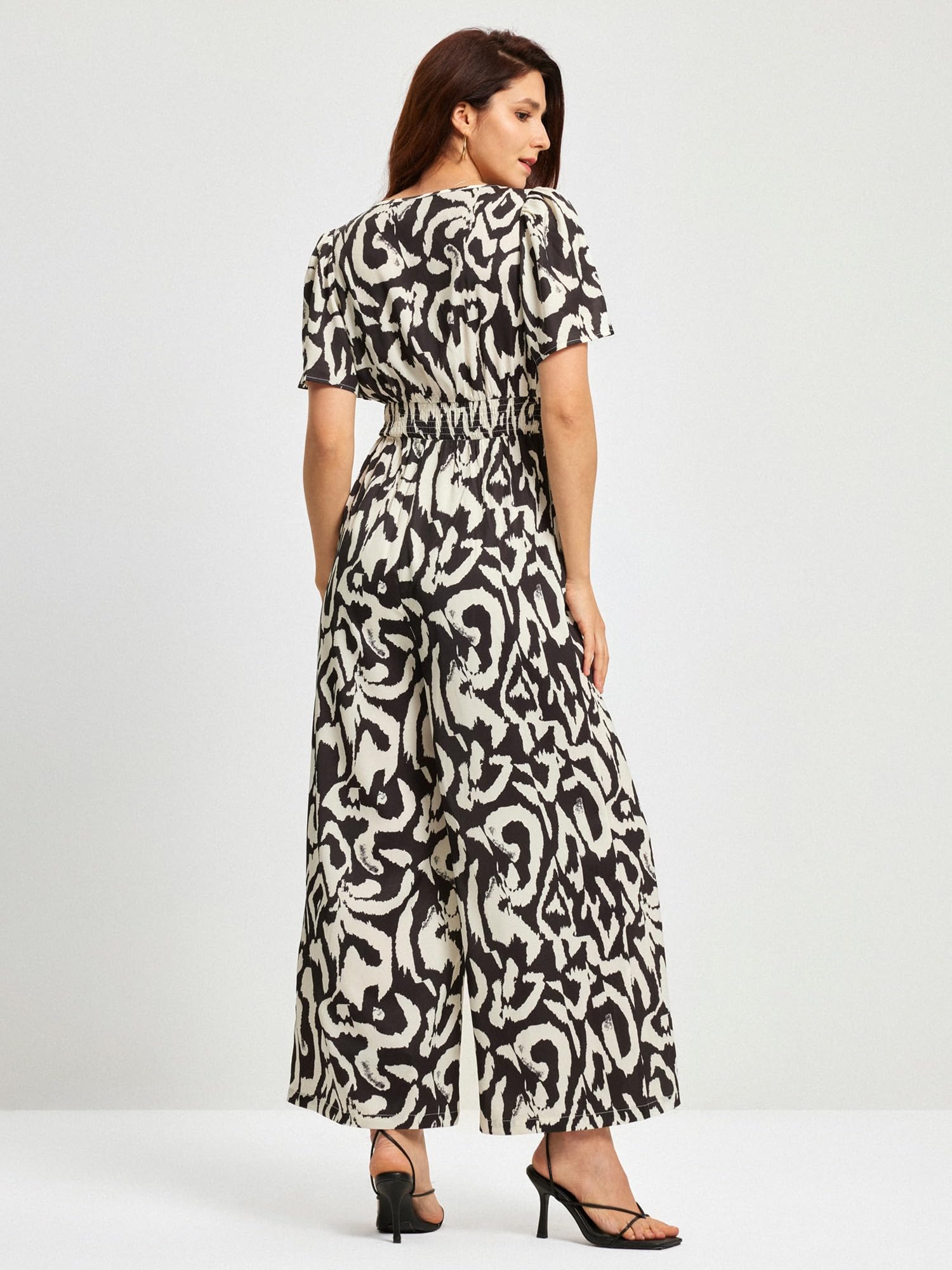 Casual Jumpsuits Wide Leg V Neck Office Business Fashion Short Sleeve